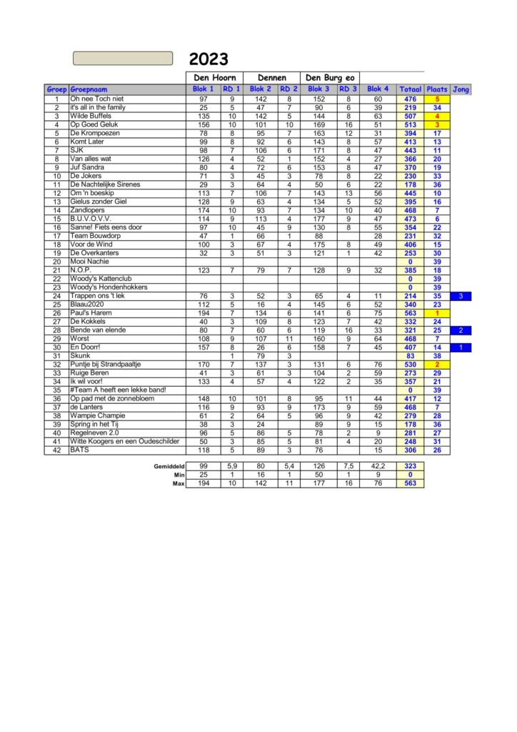 Hierbij de scores en ranking van de eerste editie van Wampex Texel 2.0!